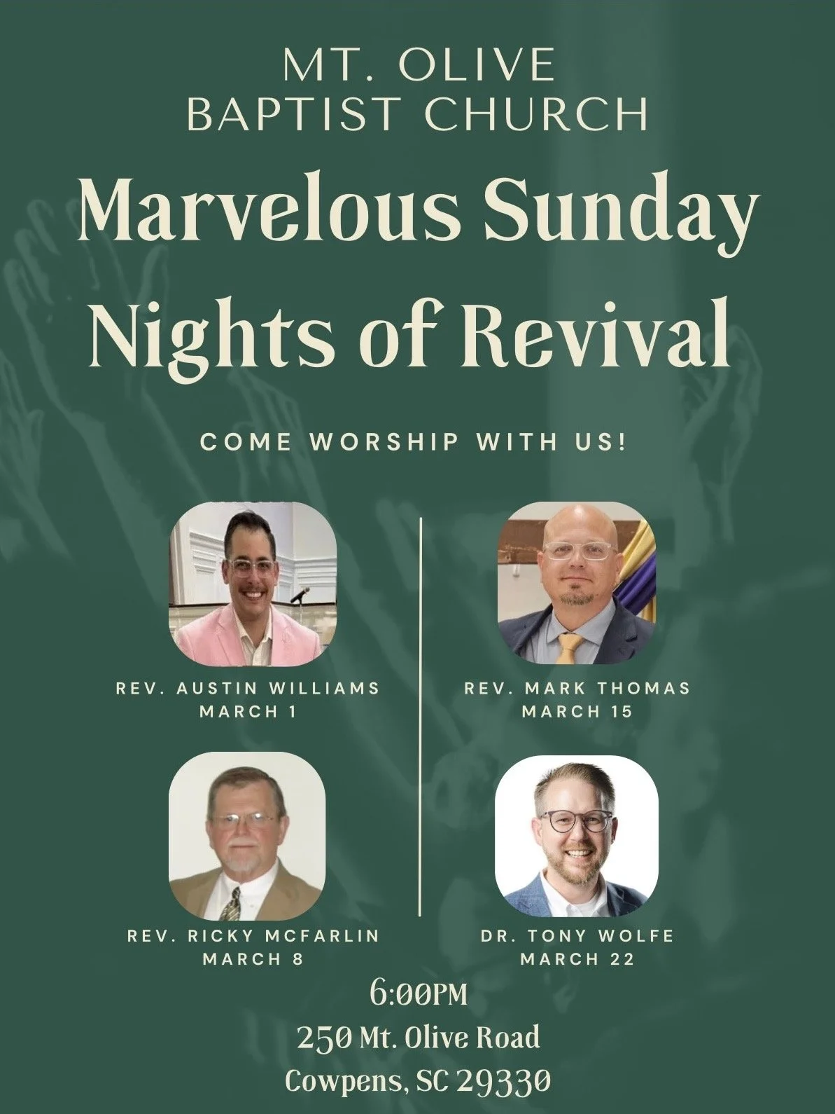 Sunday, March 22: Marvelous Sunday Night of Revival - Dr. Tony Wolfe